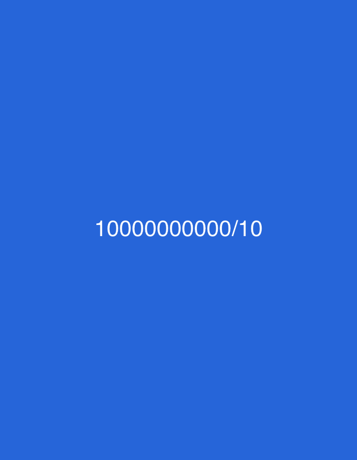 A solid blue background presents the mathematical expression "10000000000/10" in white