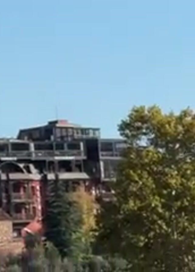 The video pans across a cityscape on a sunny day, revealing a hillside with buildings, including one prominently labeled "TERASSA RESTAURANT
