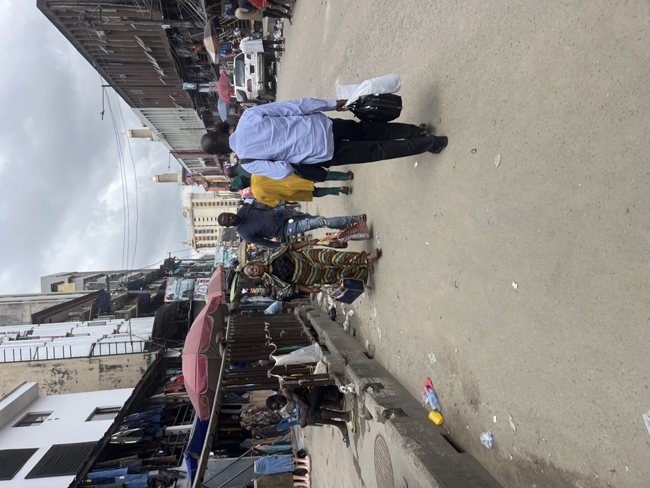 - "This image depicts a bustling street market on Lagos Island, Nigeria, likely along Nnamdi Azikiwe Street, with the prominent golden-domed minarets of the Lagos Central Mosque visible in the distance" by FM-marMB2, licensed under CC BY 4.0