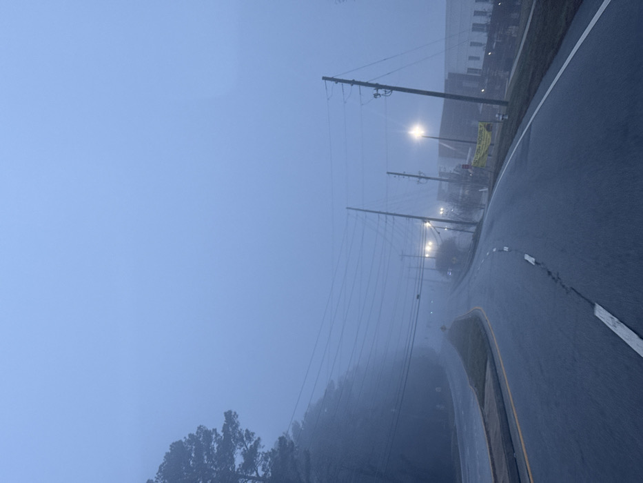 - "The image depicts a two-lane asphalt road in Lawrenceville, United States, under conditions of heavy fog and an overcast sky, casting a cool blue-gray tone over the scene" by FM-AodXs2, licensed under CC BY 4.0
