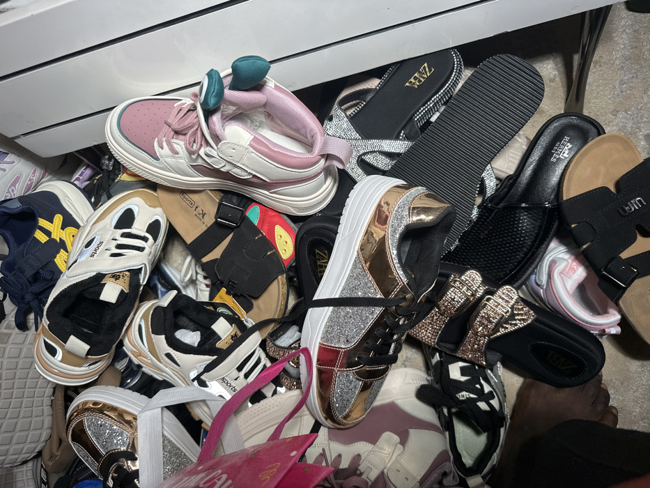 - "This image captures an overhead view of a dense, disordered pile of assorted footwear within an indoor setting in Tarauni, Nigeria" by FM-NWeep2, licensed under CC BY 4.0