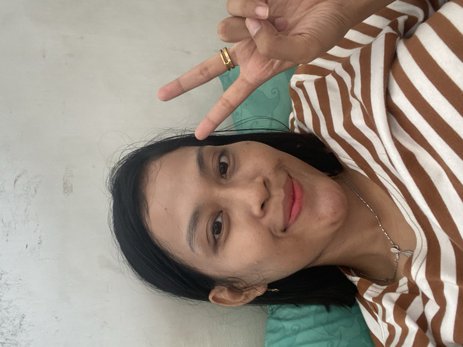 - "A smiling woman with dark hair is lying down wearing a striped brown and white shirt" by FM-v0QbG2, licensed under CC BY 4.0