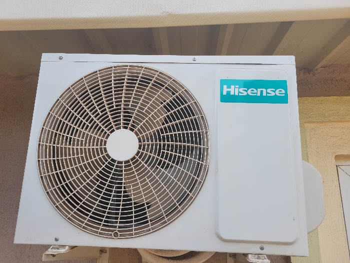 - "An outdoor white Hisense air conditioning unit is mounted on a light tan building wall in Makurdi, Nigeria" by FM-m6iwH3, licensed under CC BY 4.0