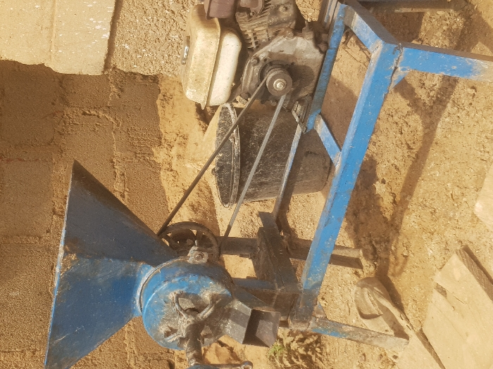 - "The image depicts a stationary, blue-painted, mechanically-powered grain or feed mill situated outdoors in what appears to be a rural or semi-urban setting in Jos, Nigeria" by FM-OjXMO2, licensed under CC BY 4.0