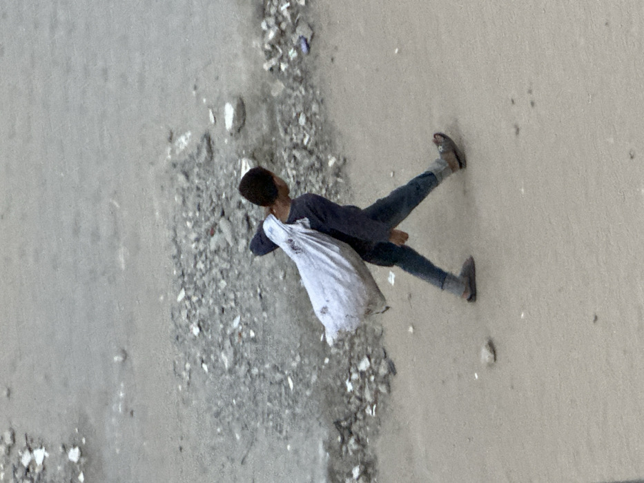 - "An overhead photograph depicts a single individual walking left to right across an unpaved, dusty ground surface in Khan Yunis, Palestinian Territory" by FM-zF1RI3, licensed under CC BY 4.0