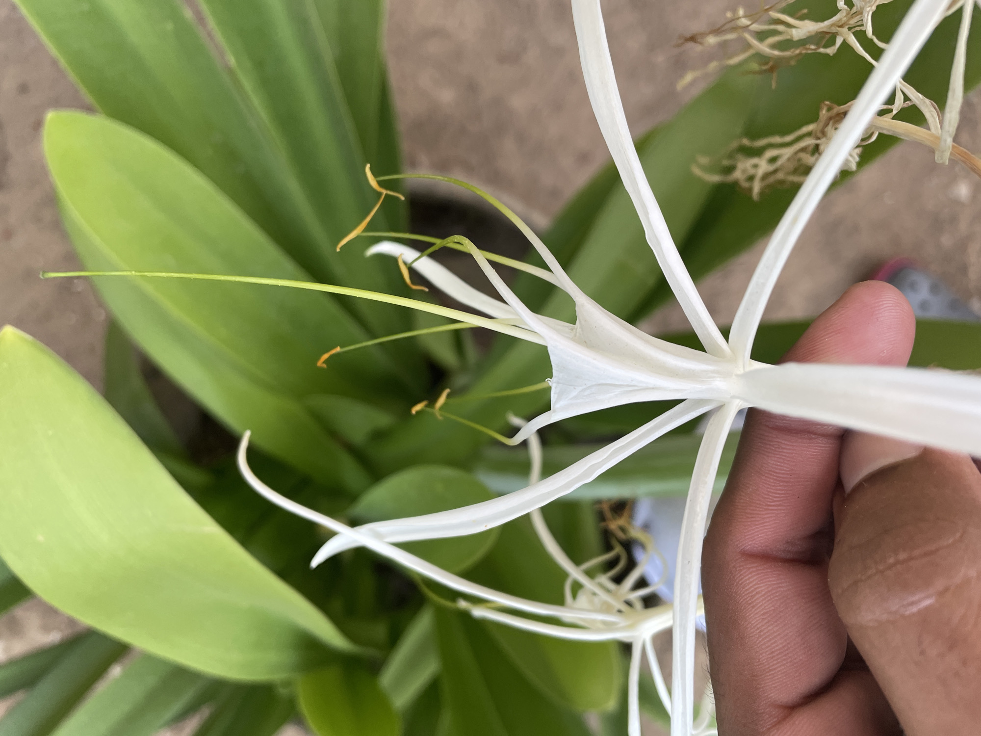 - "A close-up captures a white Spider Lily flower, partially held by a person's hand in the bottom right corner" by FM-aCFYQ2, licensed under CC BY 4.0