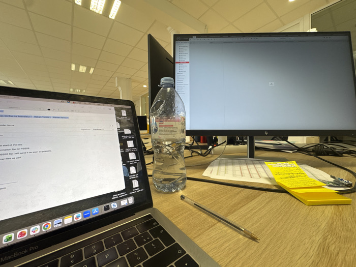 - "An indoor, overhead-shot image depicts a desk setup in an office environment in Paris, France" by FM-AAQn02, licensed under CC BY 4.0