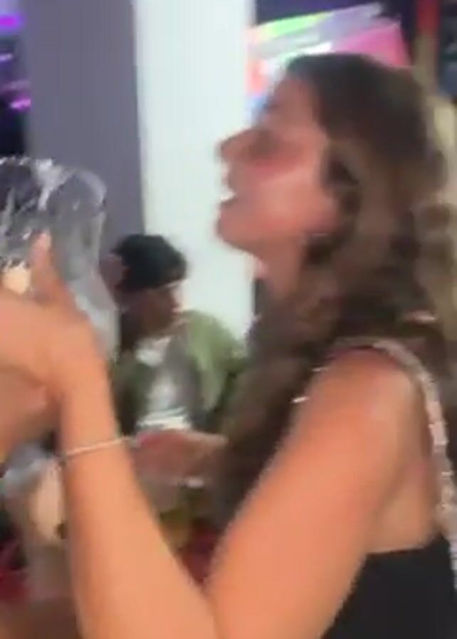 The video captures a lively indoor scene, presumably a celebration or party, with a group of young adults