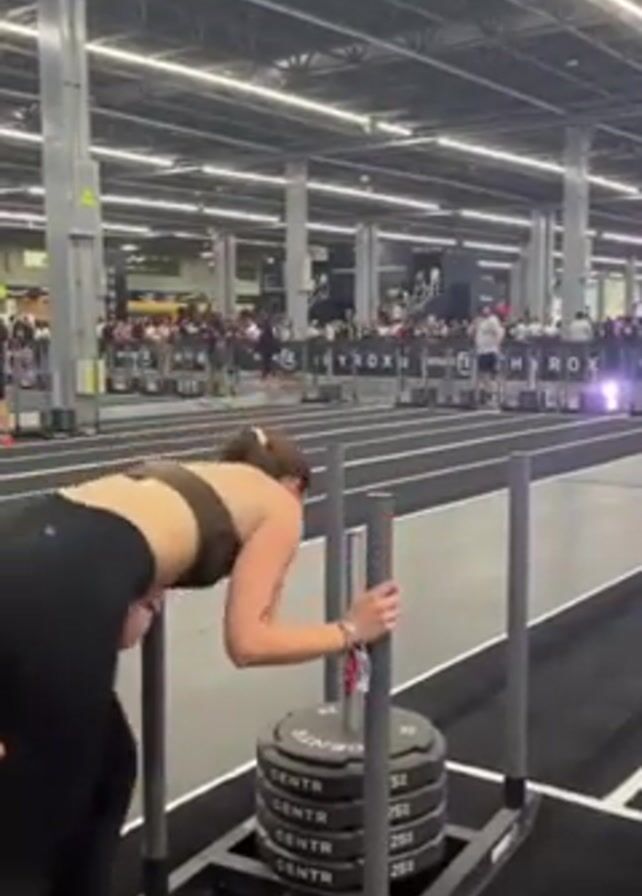 - "A woman in a dark sports bra and leggings performs the sled push at a HYROX event" by FM-Co7az1, licensed under CC BY 4.0