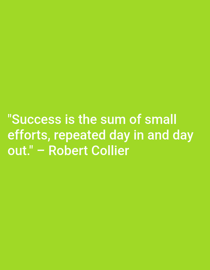 A green background displays a white quote attributed to Robert Collier: "Success is the sum of small efforts, repeated day in and day out