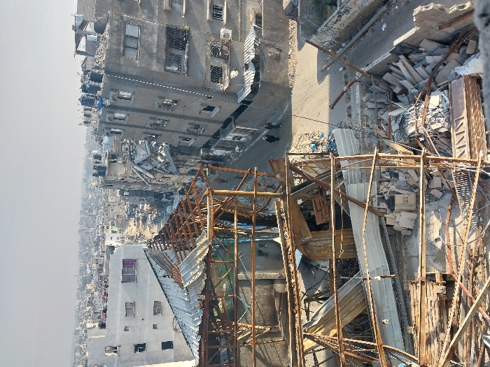 This image presents an elevated view of severe urban destruction in the city of Gaza, Palestinian Territory