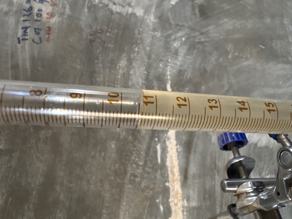 - "The image displays a close-up, vertical view of a clear glass graduated cylinder or burette containing a translucent, pale yellow liquid" by FM-4wZdt2, licensed under CC BY 4.0