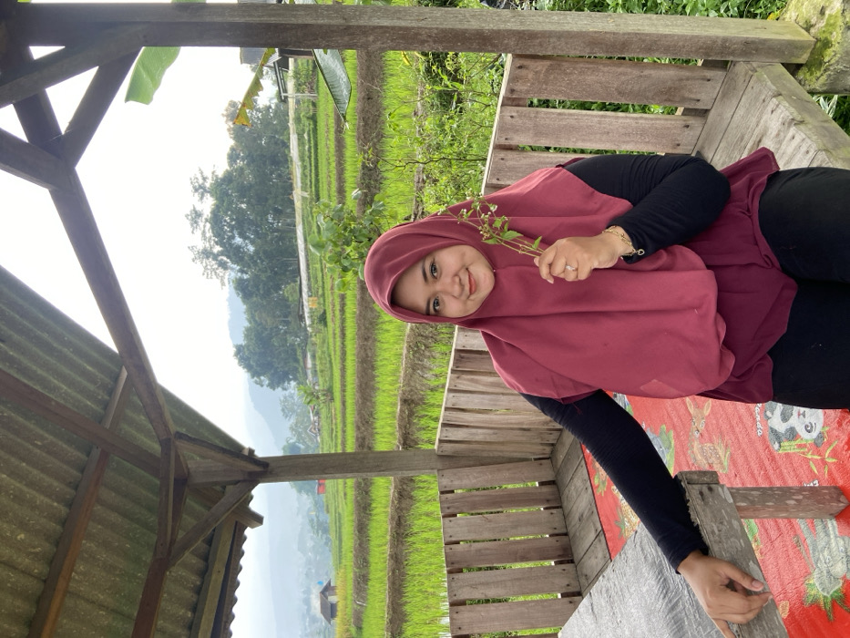 - "A lone adult female is seated inside an open-sided wooden structure, likely a gazebo or hut, overlooking terraced rice paddies in the vicinity of Penanggungan, Indonesia" by FM-htxI33, licensed under CC BY 4.0