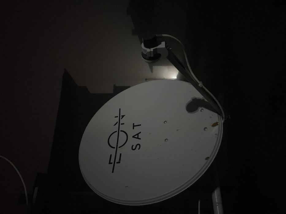 - "The image depicts a white satellite dish, branded "EON SAT" in black lettering, positioned outdoors in Sedlartsi, Bulgaria, under low-light conditions, likely at night" by FM-yFnm82, licensed under CC BY 4.0