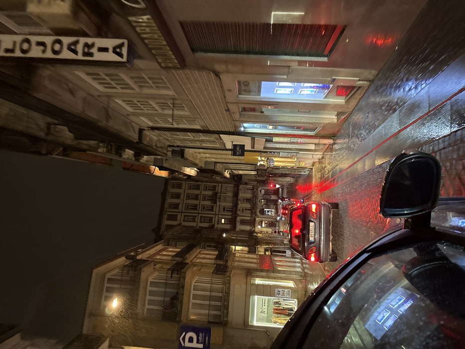 - "A wet narrow street at night, framed from inside a car" by FM-9Sf5L2, licensed under CC BY 4.0