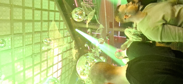 This image depicts an interior scene within an entertainment venue, possibly a nightclub or disco, located in Unknown, Unknown