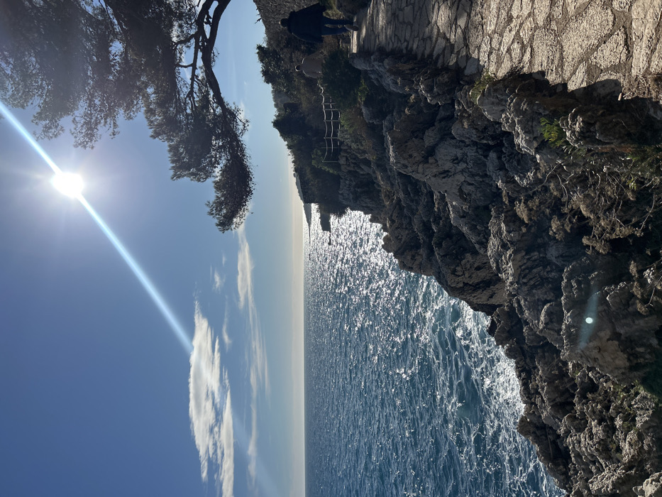 - "The image displays a sunlit coastal panorama in Antibes, France, likely along the Sentier du Littoral or Chemin des Douaniers" by FM-bcuvC3, licensed under CC BY 4.0