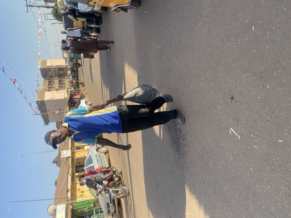 The image depicts a daytime street scene in Kaduna South, Nigeria