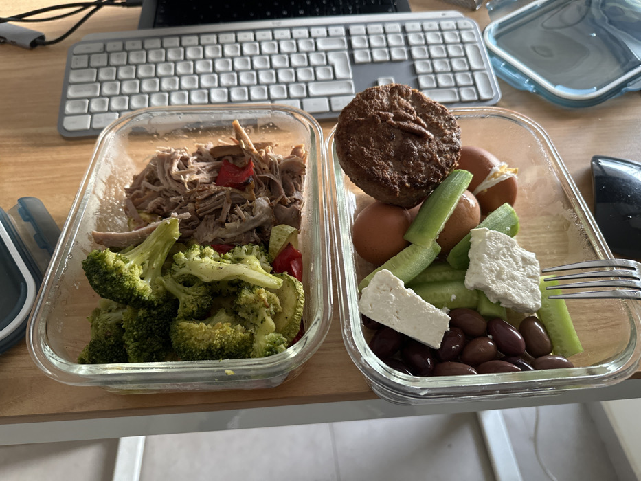An overhead view displays two clear glass food containers on a light wooden surface in Sofia, Bulgaria