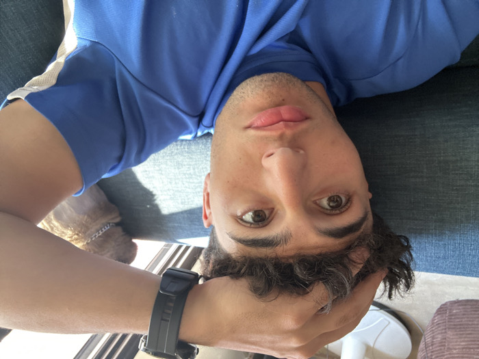 - "An indoor scene captured in the Sarouja Municipality, Syria, depicts a young adult male reclining on a dark blue upholstered surface, possibly a couch" by FM-EsaHu1, licensed under CC BY 4.0
