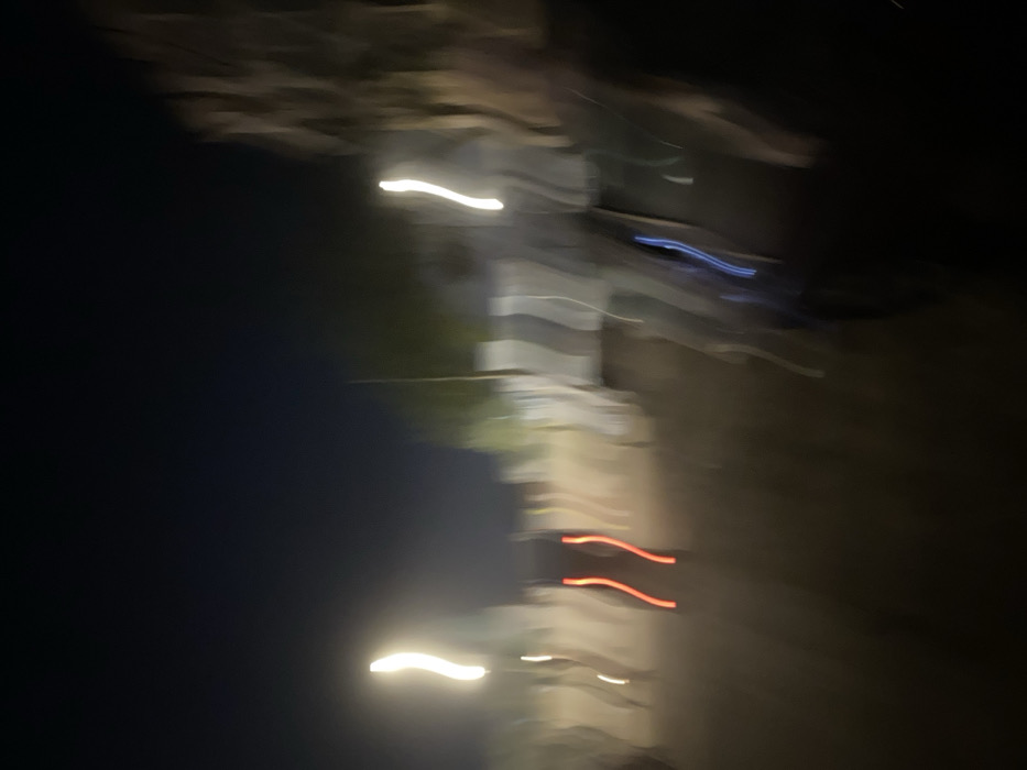 The image captures a blurry scene at night