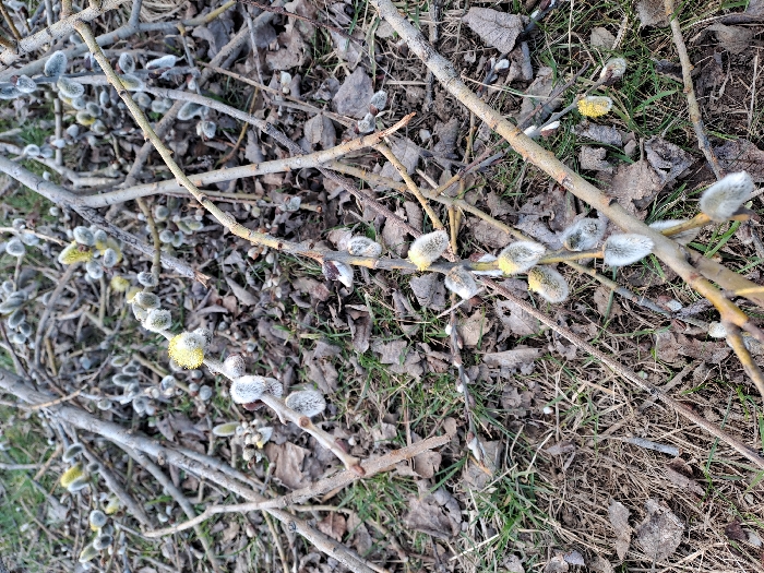 - "An outdoor scene in Spanchevtsi, Bulgaria, displays a collection of severed pussy willow branches scattered across an uneven ground surface" by FM-K4MkE3, licensed under CC BY 4.0