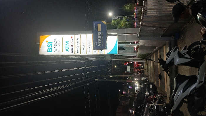 This nighttime image depicts an urban street scene in Bandarbireuen, Indonesia