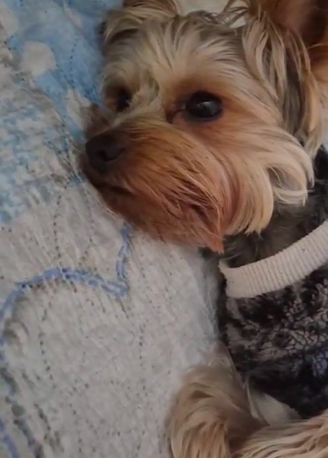 - "close-up of a Yorkshire Terrier dog lying on a bed" by FM-aeJg82, licensed under CC BY 4.0