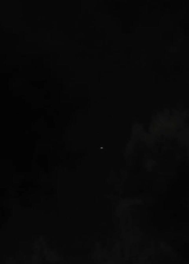 black night sky with a small, dim, and indistinct light in the center of the frame