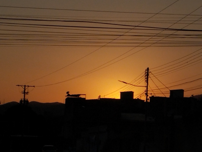 - "The image depicts an urban landscape in Guacara, Venezuela, rendered in silhouette against an orange-yellow sky, indicative of sunset or sunrise" by FM-uiwdr1, licensed under CC BY 4.0