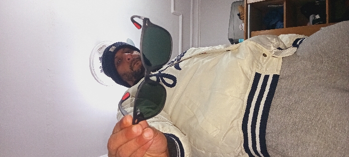 - "A man in a dark blue beanie holds up black sunglasses with red accents" by FM-oKOCt2, licensed under CC BY 4.0