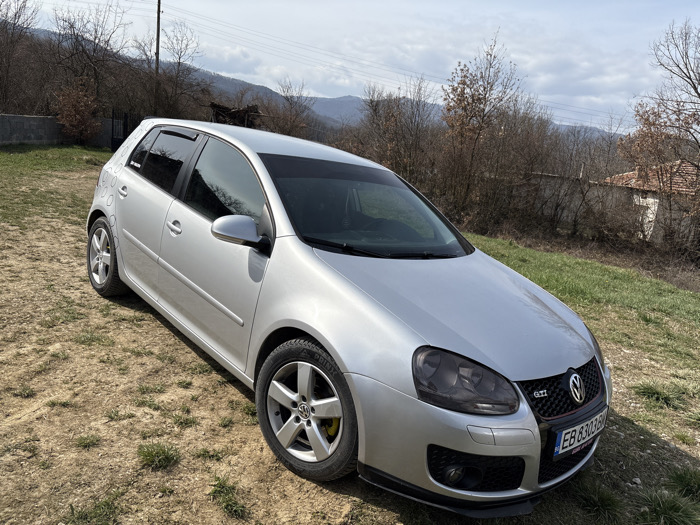 - "The scene, located in the city of Kastel, Bulgaria, depicts a silver five-door Volkswagen Golf GTI (Mk5) stationary outdoors on uneven ground comprising dry earth and sparse green grass" by FM-UlzaA3, licensed under CC BY 4.0