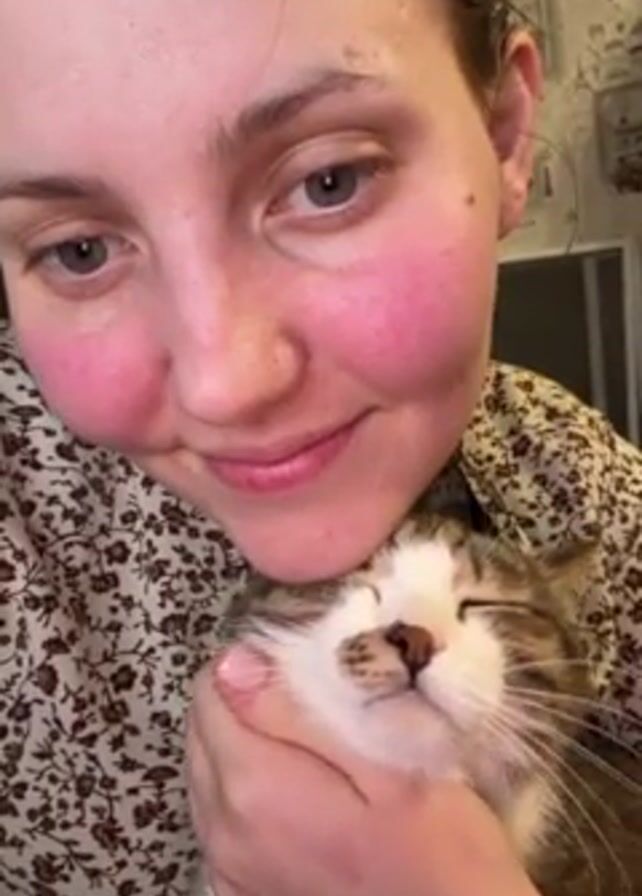 A woman is holding a cat up against her face