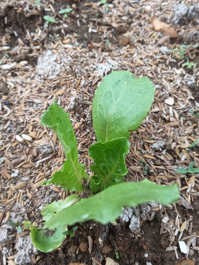 - "A close-up view depicts a young, green leafy plant, consistent with a lettuce seedling, rooted in dark brown soil within the city of Pinnwe, Myanmar (Burma)" by FM-Txui92, licensed under CC BY 4.0