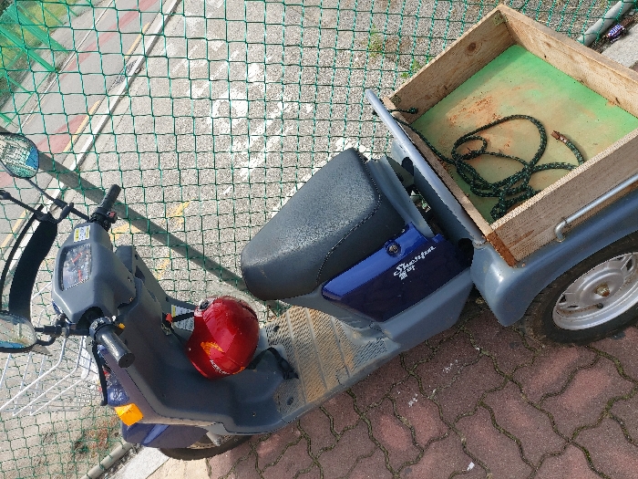 - "A gray and blue "Shevron" electric scooter (쉐브론 전기자전거 107) with a black seat is parked on a red-brown interlocking paver pathway in 강화군, South Korea" by FM-xMf1b2, licensed under CC BY 4.0