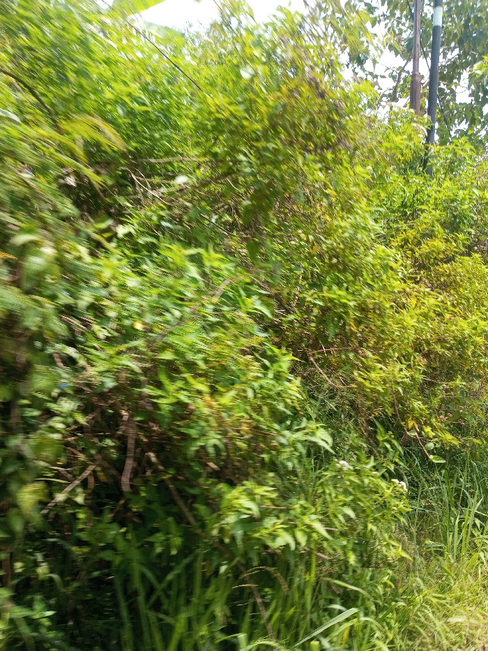 The scene depicts a dense expanse of green foliage, characteristic of a natural or overgrown outdoor environment, located in Vieng Phouka, Laos