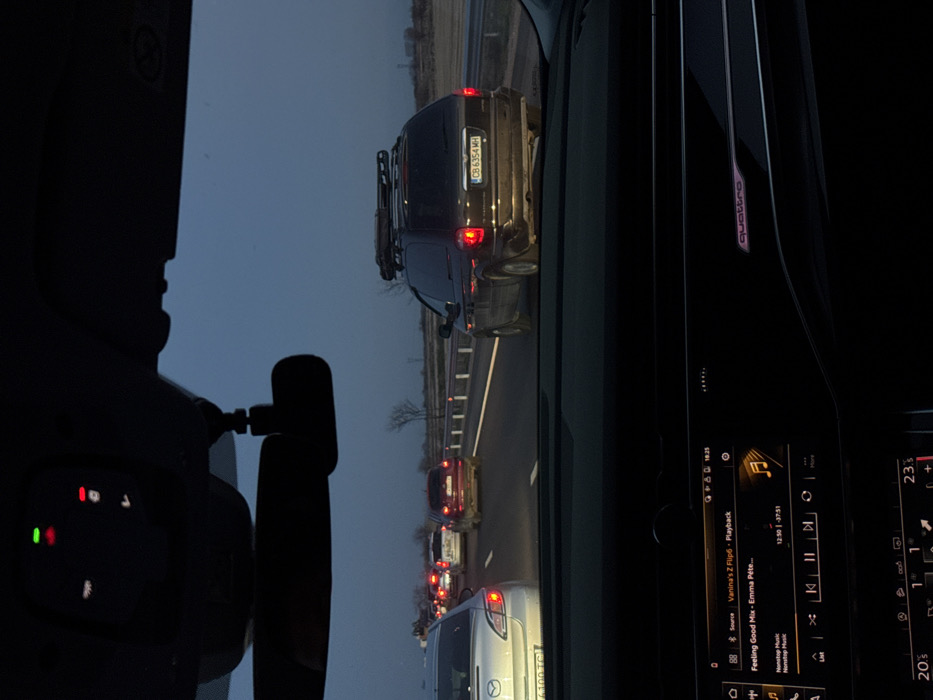 - "The image depicts a twilight scene from the interior of a vehicle on a multi-lane road near Malo Konare, Bulgaria, with traffic visible ahead" by FM-CycdJ3, licensed under CC BY 4.0