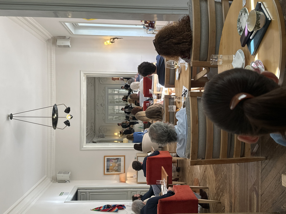 The image depicts an elegant indoor event within a refined venue in Madrid, Spain