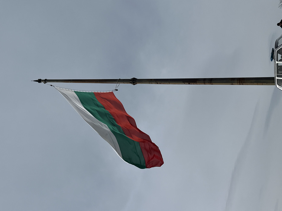 - "A Bulgarian national flag, horizontally striped white, green, and red, is displayed prominently from a tall, dark metal flagpole against an overcast, light grey sky" by FM-ZIzs72, licensed under CC BY 4.0