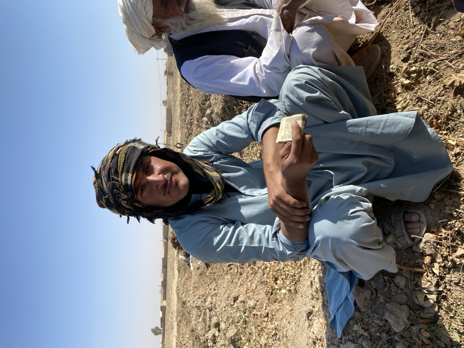 - "This image captures two men in Mandisar, Afghanistan, sitting on dry, dusty ground under a clear, bright blue sky" by FM-B5wmg2, licensed under CC BY 4.0
