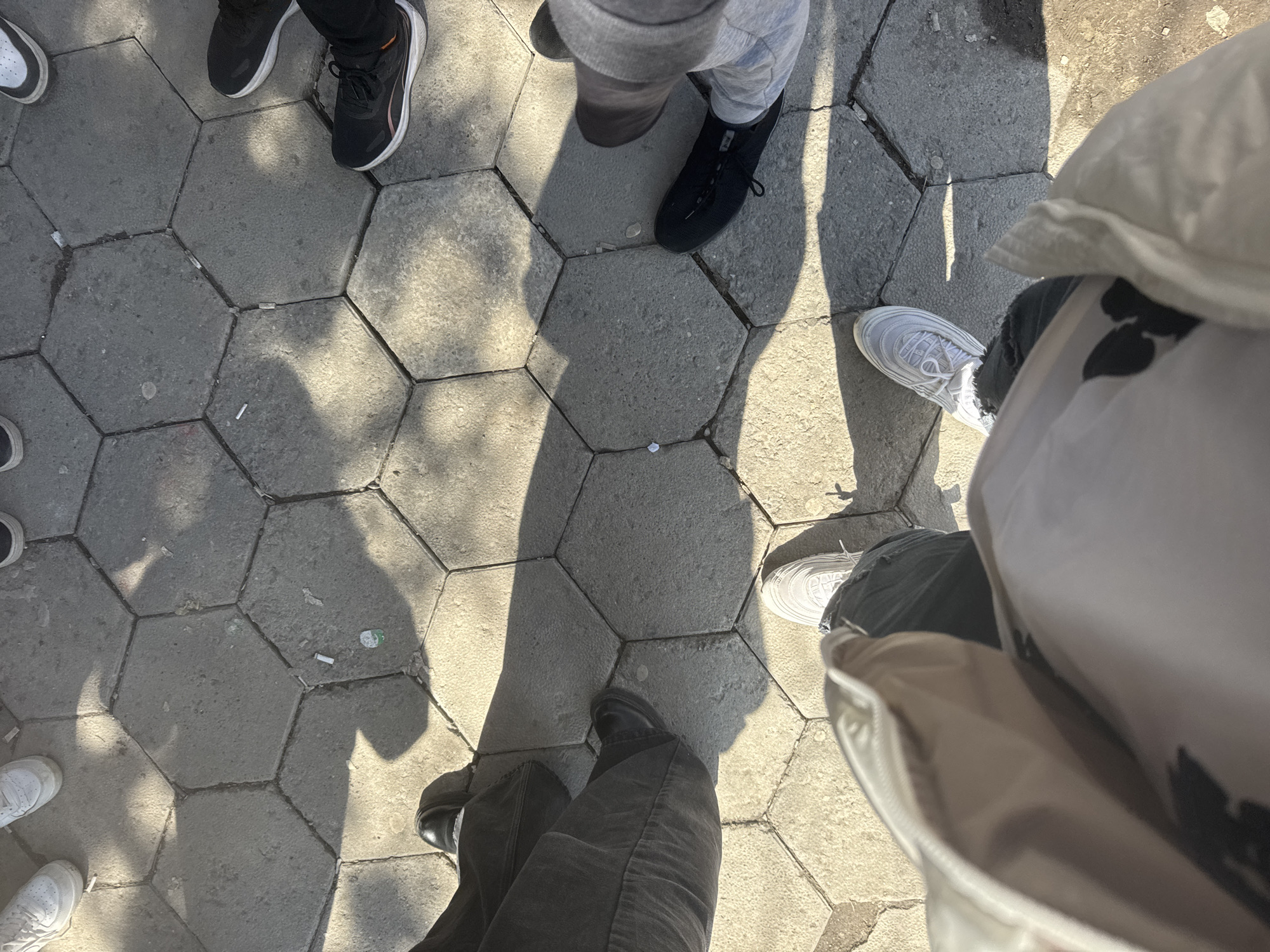 - "An overhead photograph captures the lower extremities of at least six individuals standing on a paved surface in the city of Shumen, Bulgaria" by FM-mnTFP2, licensed under CC BY 4.0