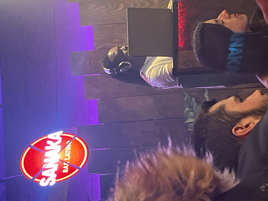 A partially-viewed indoor shot features patrons at "SANAKA BAR LATINO
