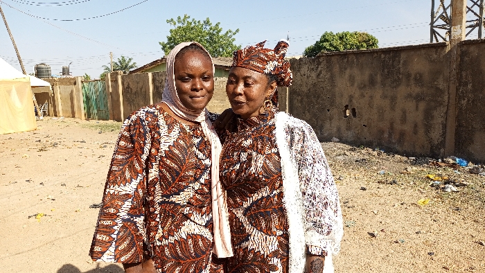 Two adult females are positioned in the foreground of an outdoor scene in Afaka, Nigeria