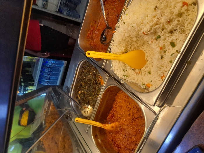 - "The image depicts a food service counter in the city of Barden Yana, Nigeria, showcasing five stainless steel chafing dishes filled with prepared food" by FM-DUSI23, licensed under CC BY 4.0
