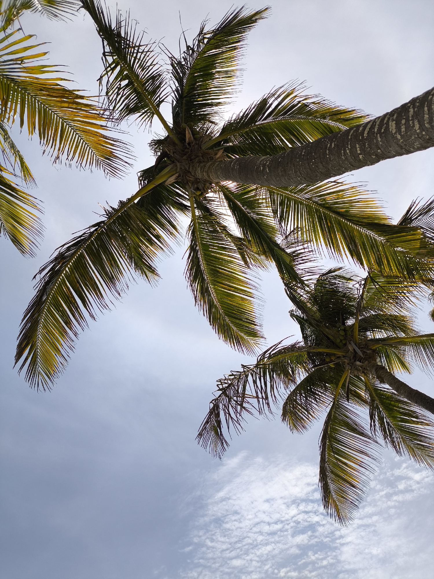 - "The image is a low-angle shot looking up at several palm trees against a backdrop of a partly cloudy sky" by FM-blrha2, licensed under CC BY 4.0