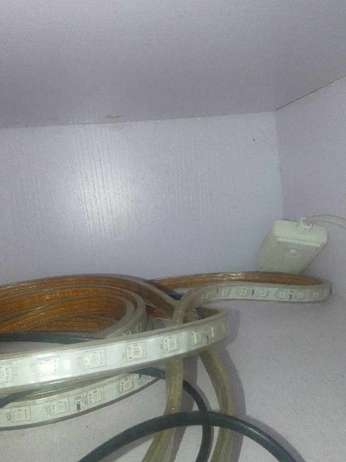 - "Inside a white cabinet, a tangled mess of LED strip lights and cords are piled" by FM-i0a4E2, licensed under CC BY 4.0