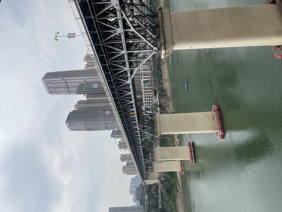 - "The image displays a large, multi-span steel truss bridge spanning a wide, green-hued river under an overcast sky, located in the vicinity of 江北城街道 (Jiangbeicheng Sub-district), Jiangbei District, Chongqing, China" by FM-QQglM2, licensed under CC BY 4.0