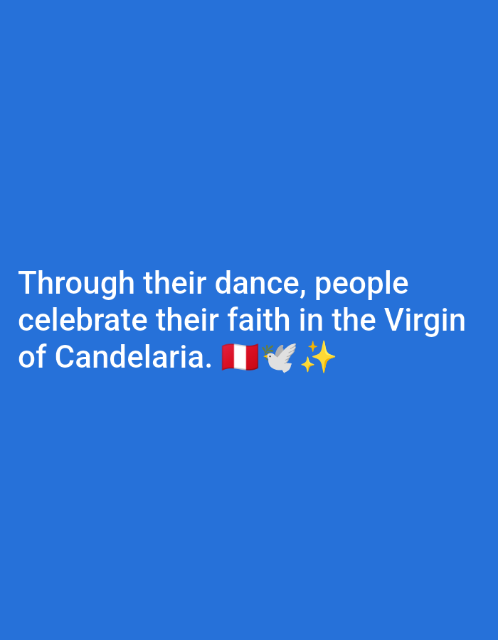 - "A blue background displays the text "Through their dance, people celebrate their faith in the Virgin of Candelaria" by FM-b0Aw43, licensed under CC BY 4.0