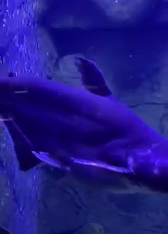 large, dark-colored fish swimming in an aquarium