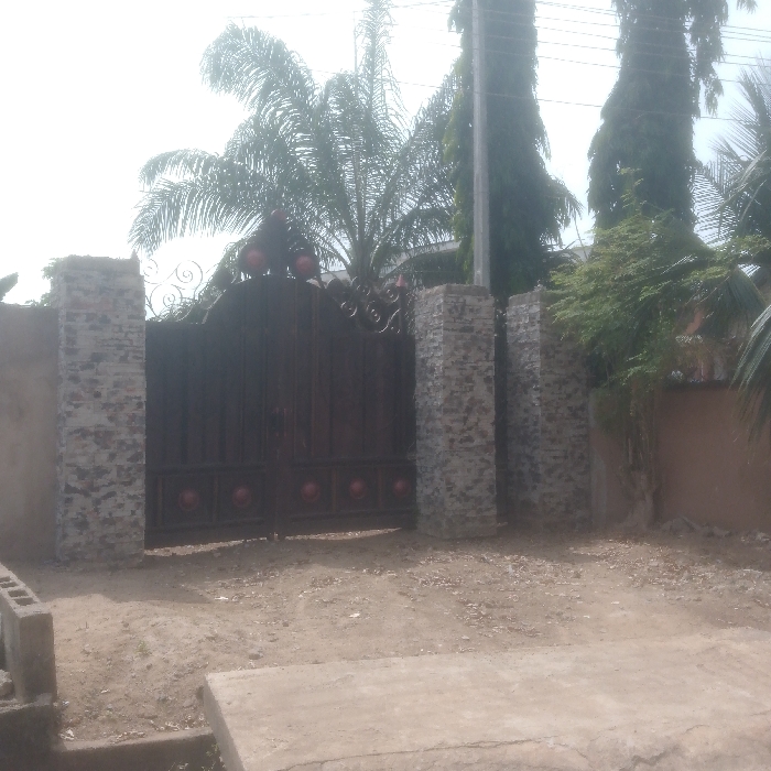 The image displays an exterior view of a property entrance in what is described as Abakaliki, Nigeria